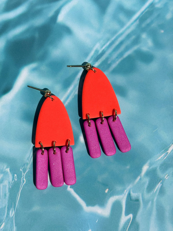 Electric Medusa Dangle - Orecchini Artigianali Arancio Fuchsia