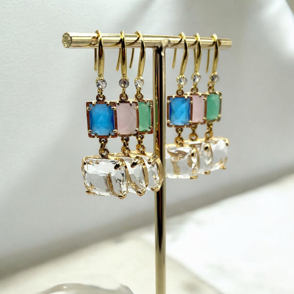 Orecchini pendenti acciaio inossidabile placcato d`oro 18kPendenti in vetro sfaccettato Anallergico e nickel freeLeggeri come la piuma100% Handmade in ItalyOgni prodotto viene realizzato a mano con cura e passione. La particolarità dei gioielli...