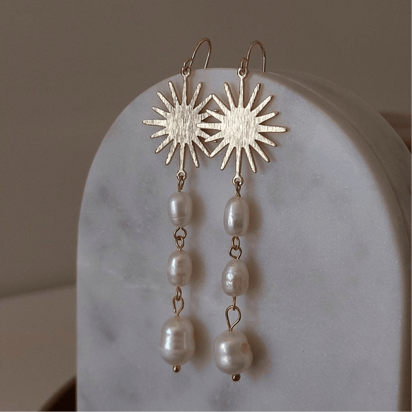 Madeline Pearl Dangle Small - orecchini Fiore oro con perla