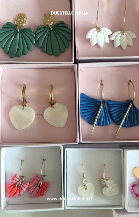 Distinguiti con questi orecchini grandi a forma di fiore, realizzati a mano con un elegante perno in acciaio inox galvanizzato in oro 18k. Il pendente, modellato con cura in argilla polimerica di qualità premium, dona un tocco unico e raffinato, perfetto per chi cerca uno stile sofisticato e originale.