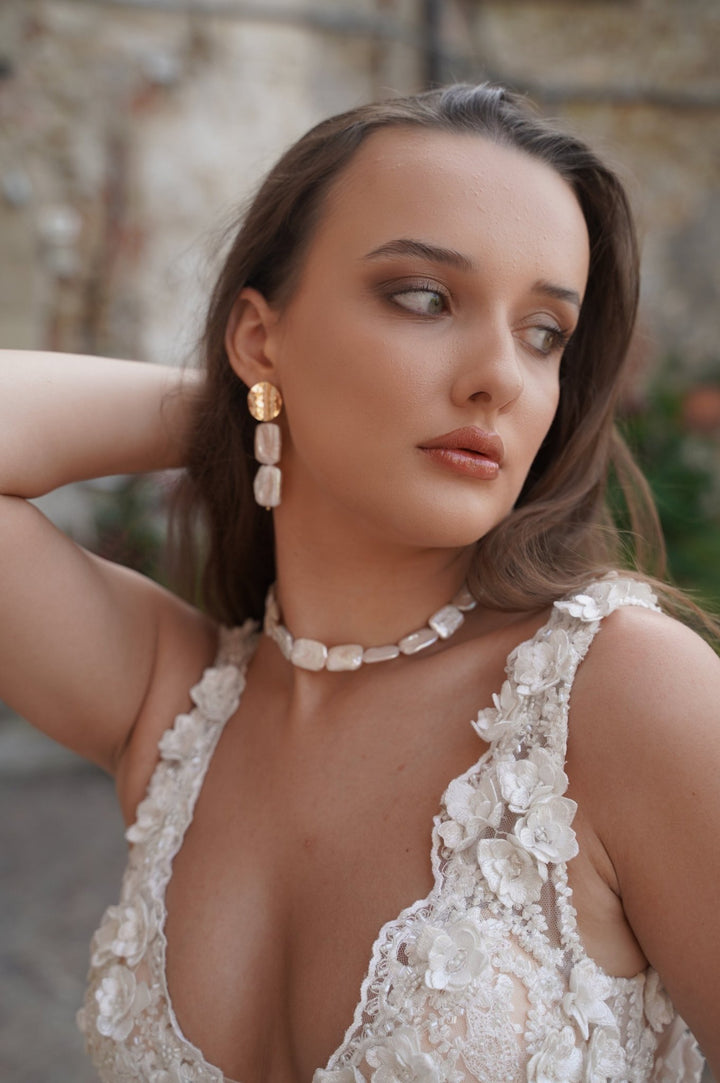 Un gioiello perfetto per la sposa moderna, ma anche per cerimonie, serate eleganti o semplicemente per valorizzare un look minimalista con un tocco autentico e prezioso.