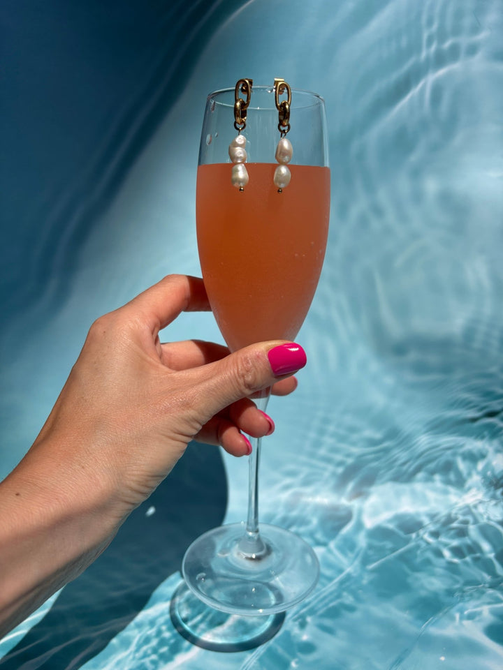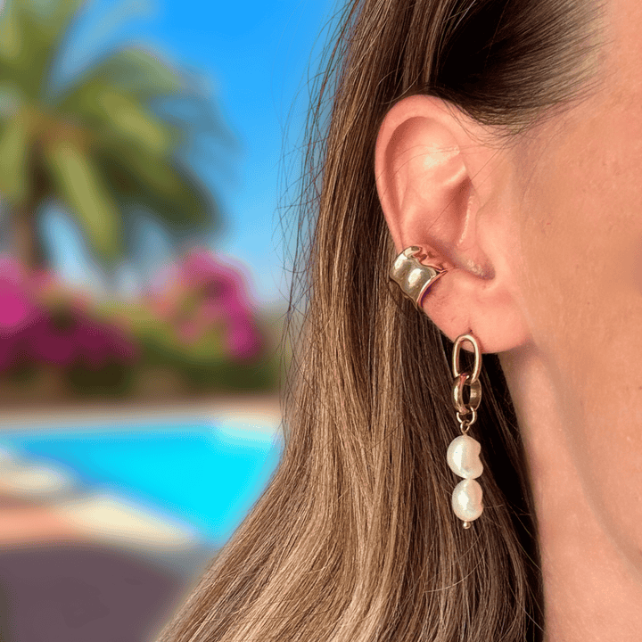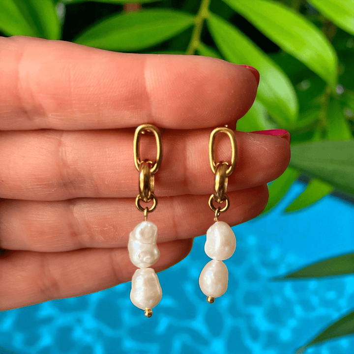 Lunghi, luminosi e unici: questi orecchini combinano il design moderno dell’acciaio dorato con la bellezza irregolare delle perle barocche naturali. Ogni perla è diversa, rendendo ogni paio un piccolo pezzo d’arte.